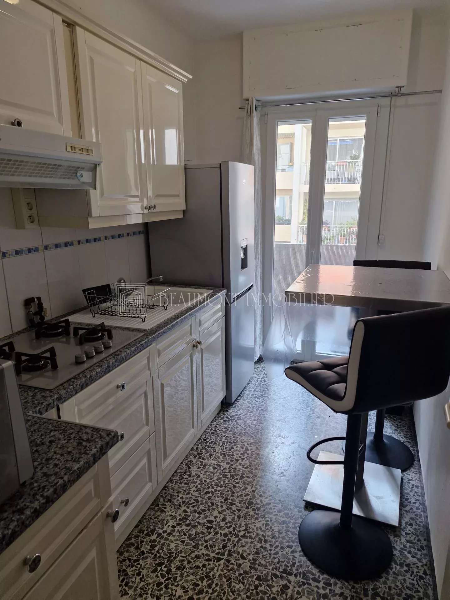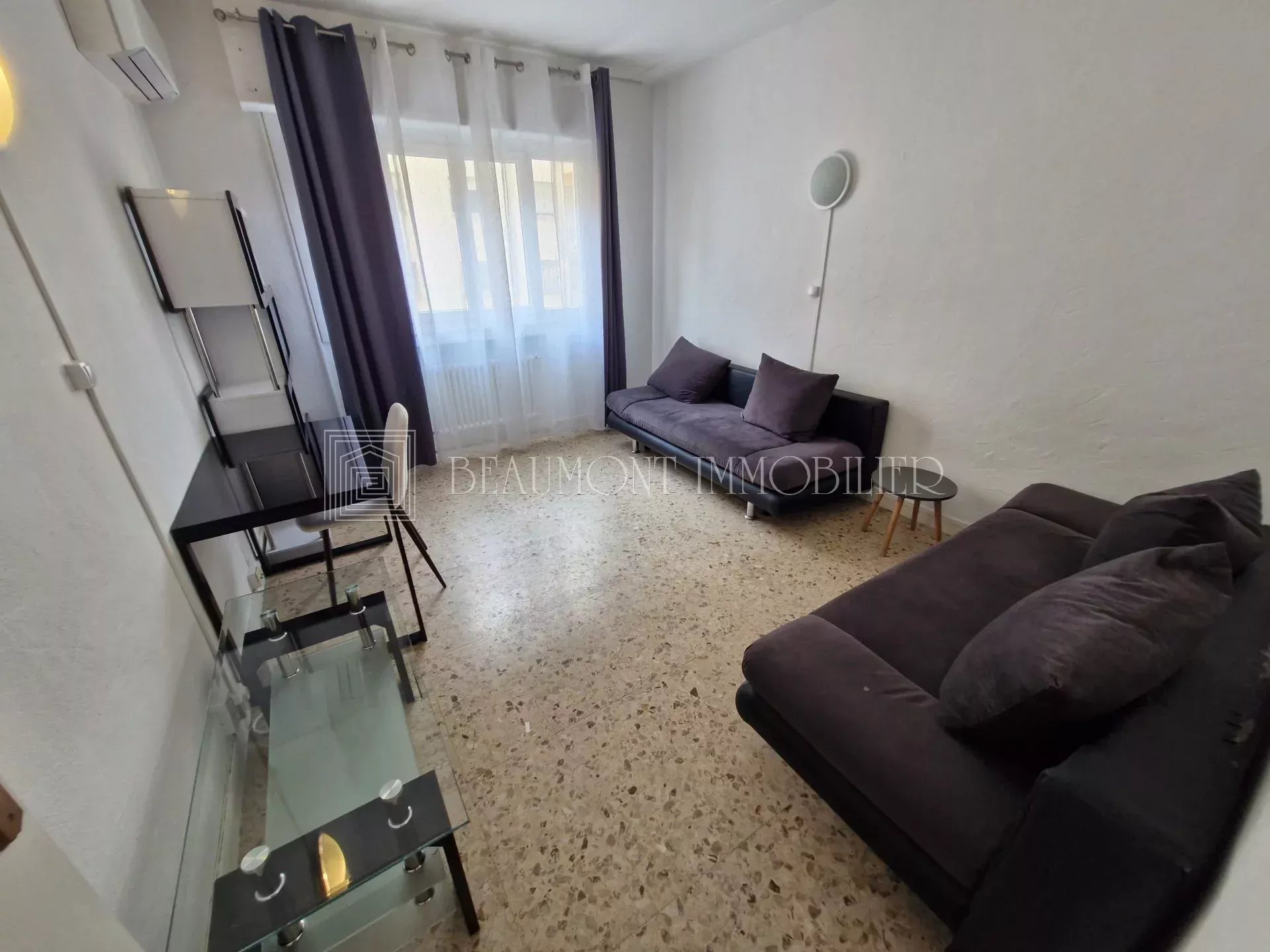 Nice République, à 100m du Tramway ligne 1, dans une belle résidence au 2iem étage avec ascenseur.Très beau F1 offrant de belles prestations, cuisine équipée, séjour de bonne taille avec petite terrasse. Meubles de qualité, climatisation réversible. Loyer 700 euros + 90 euros de charges en tout collectif.