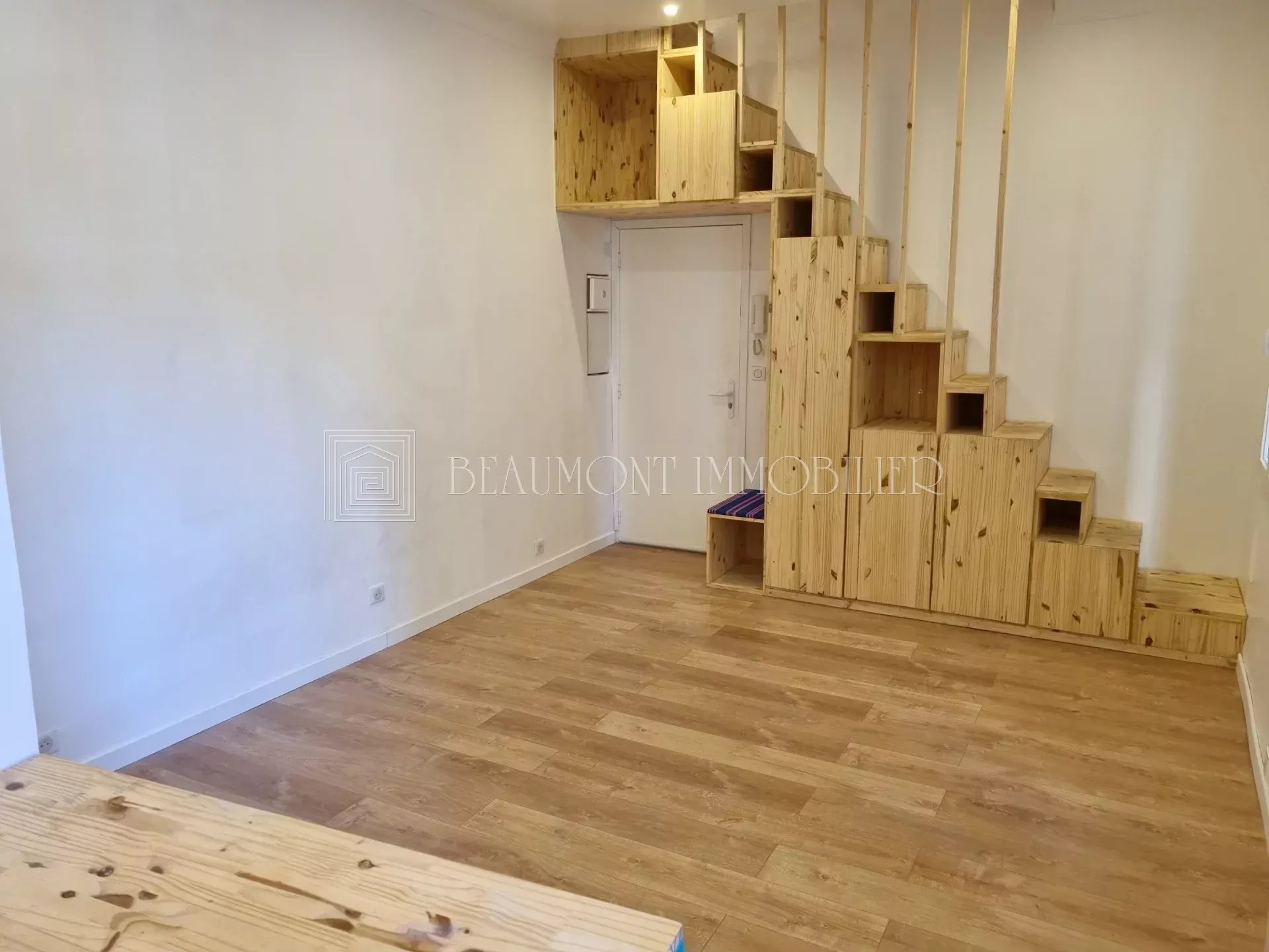 Nice République, au dernier étage d'une petite maison au calme d'une petite cour intérieure, très beau studio avec mezzanine dans les combles, superbe pièce de vie avec cuisine US aménagée. Nombreux rangements, et bon état. loyer 690 euros + 10 euros de charges. Eau froide individuelle.